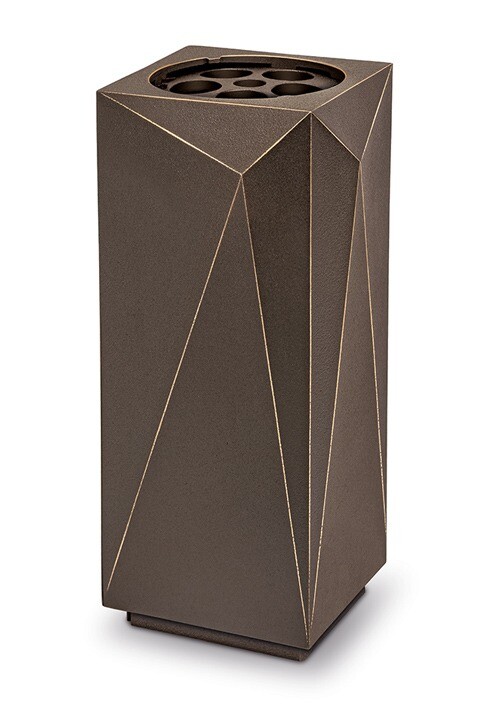 En modern formgiven gravvas i brons. Bronslyktor passar utmärkt med granit, glas och natursten.